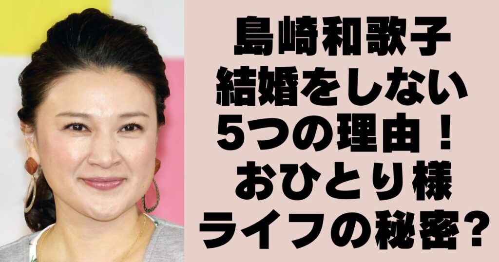 なぜ、52歳になっても結婚せずにおひとり様ライフを満喫しているのでしょうか?島崎和歌子さん。デビューから36年、バラエティ番組や歌手活動で常に第一線で活躍していて、多くのファンを魅了し続けています。 島崎和歌子さんの結婚しない理由は何なのでし... -