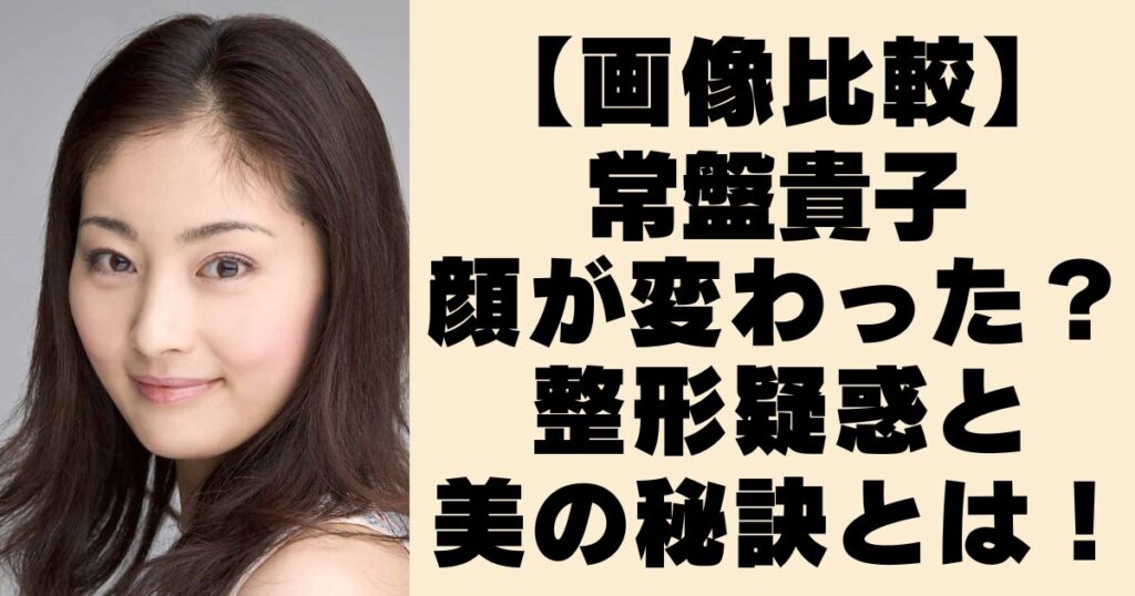 「顔が変わった?」と話題になっている女優の常盤貴子さん。90年代から活躍し、数々の名作ドラマに出演、今なお第一線で活躍する実力派女優です。 常盤貴子さんの顔の変化は本当に整形によるものなのでしょうか?また、52歳とは思えない若々しさを保ってい... -