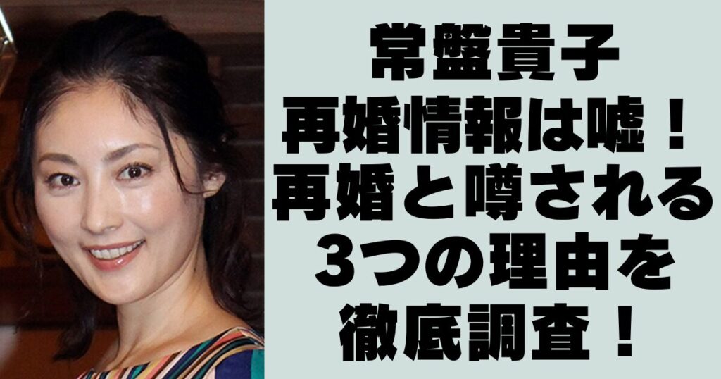 「再婚したの?」と噂が絶えない女優の常盤貴子さん。透明感のある美貌と確かな演技力で、デビューから30年以上経った今も第一線で活躍を続けています。 常盤貴子さんは本当に再婚したのでしょうか?また、なぜ再婚の噂が広まっているのでしょうか?常盤貴... -