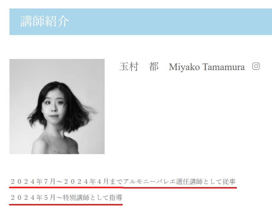 飯田栞月さんが通っていたのは、東京にある「アルモニーバレエ」という教室です。ここで指導していた玉村都先生は、宝塚音楽学校の合格者を多数輩出している名門講師として知られています。