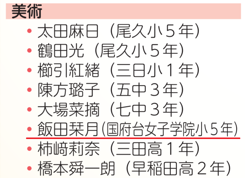 飯田栞月さんは美術や絵画も習っていました。その才能は確かなもので、小学5年生のときには荒川区の教育委員会褒賞の美術部門を受賞しています。