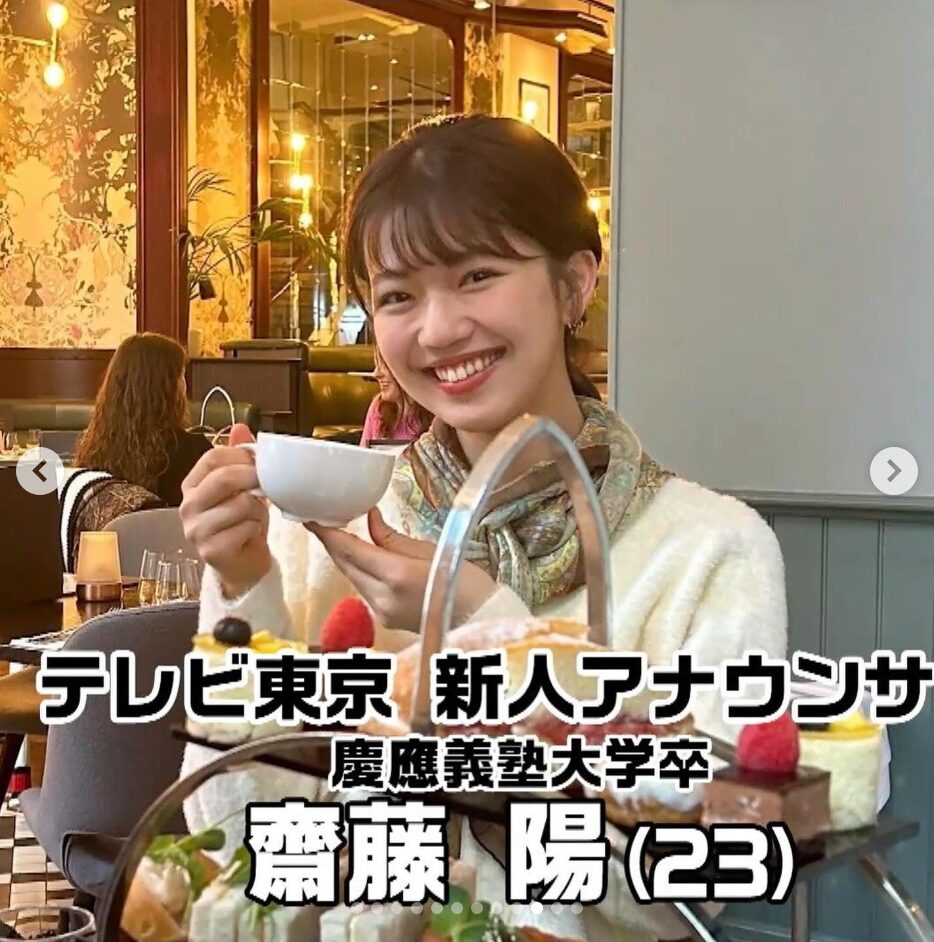 齋藤アナは今年4月にテレビ東京に入社したばかりの23歳。中学まで山形県で育ち、高校時代はアメリカに留学していたという経歴を持つ、期待の大型新人です。