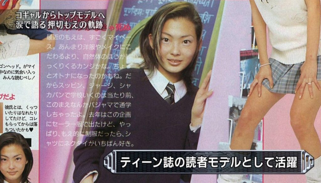 押切もえさんのキャリアは、高校1年生の時に地元の日焼けサロンでスカウトされたことから始まりました。当時の彼女は、濃い小麦色の肌と華やかなメイク、明るい茶色の髪が特徴的でした。ふっくらとした頬と若々しい表情は、多くの読者の憧れとなりました。