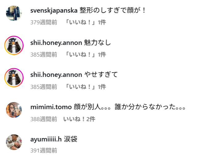 Instagramへの投稿に対しても「誰か分からない」というようなコメントもあります。